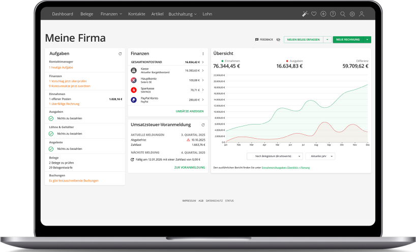 Lexware Office zeigt Dir alle Einnahmen + Ausgaben auf einen